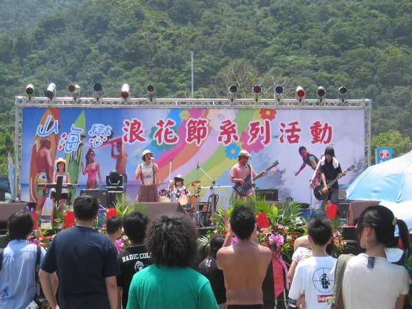 如果從操場往後面走,五分鐘內就會走到蜜月灣,在沙灘上配合當地社區的浪花節設立了浪花舞台。